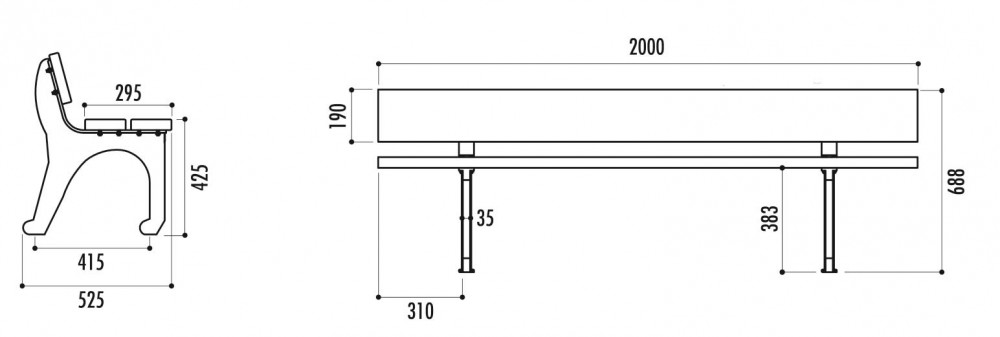 Ce banc urbain dispose d'un piétement en fonte ductile finition peinture noire, perforé pour fixation au sol par vis d’ancrage (fournies).