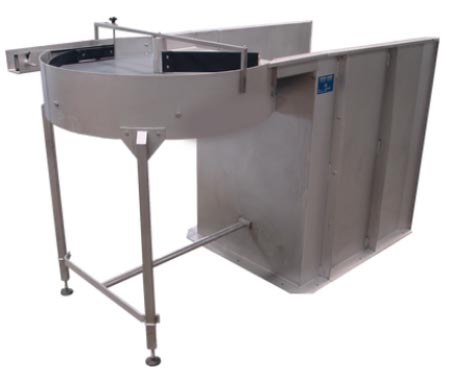 - Le réalignement des boîtes se fait au moyen d’un réaligneur à 90° doté d’un agitateur pneumatique.