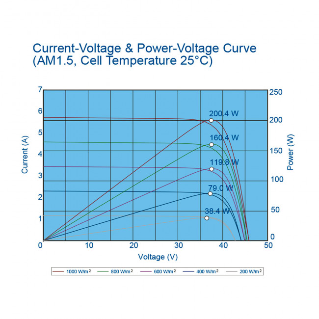 C'est l'un des plus puissants de la gamme car il offre un rendement énergétique élevé même dans des conditions de faible éclairement énergétique et de faible coefficient de température. Le panneau solaire comprend deux câbles de 90 cm et 4 mm de section avec deux connecteurs MC4, facilitant ainsi son branchement.