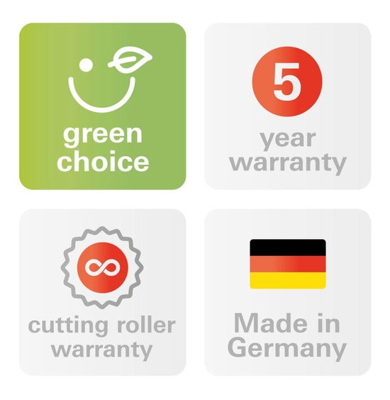 - Cylindres de coupe en acier trempé : garantie à vie