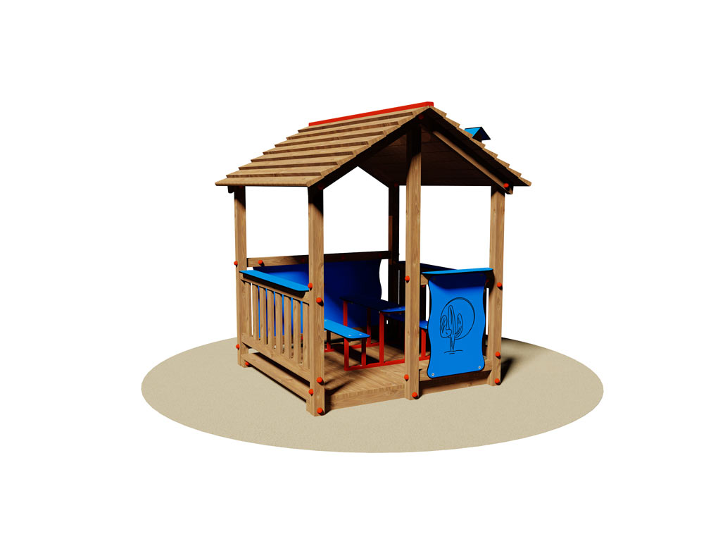 - 1 toit à deux flancs en lamelles de 2,5 cm d’épaisseur.