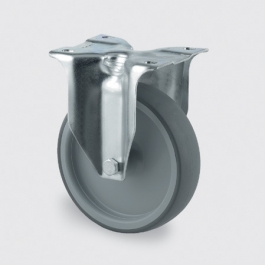 Corps de roue polypropylène, Bandage TENTEprène (caoutchouc thermoplastique), gris non tachant, roulements rouleaux, Fixation à platine