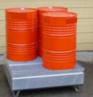 10 bacs de rétention renforcés pour être manutentionnés, galvanisé, pour 4 fûts verticaux de 220L