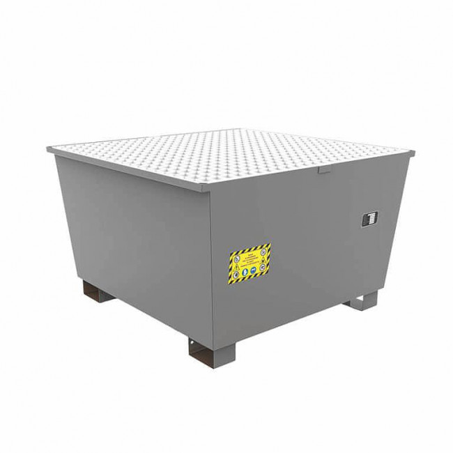 Ce bac de rétention en acier galvanisé est conçu pour le stockage sécurisé des liquides dangereux.