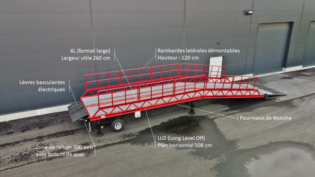 Plan horizontal allongé (LLO) à 525cm pour les opérations de chargement / déchargement de grandes longueurs