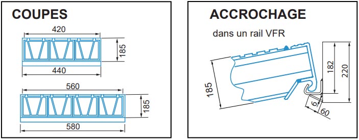 - Section tubulaire alvéolée : épaisseur 185 mm.