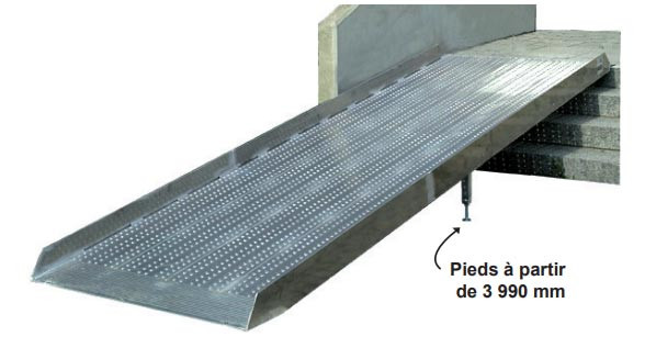 La rampe en aluminium présente l'intérêt de pouvoir être installée provisoirement ou définitivement afin de permettre le franchissement de quelques marches.