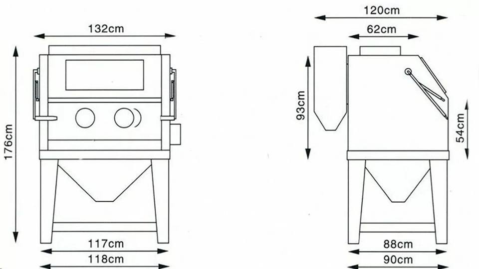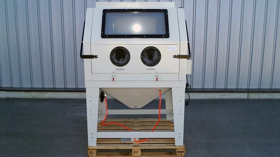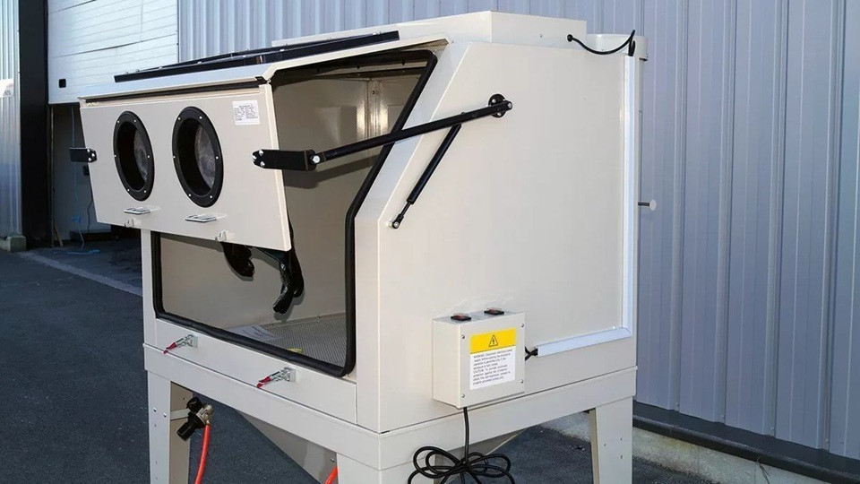 Cette cabine de sablage à grande ouverture frontale a été conçue pour répondre aux besoins des utilisateurs qui travaillent sur des pièces de taille moyenne à grande.