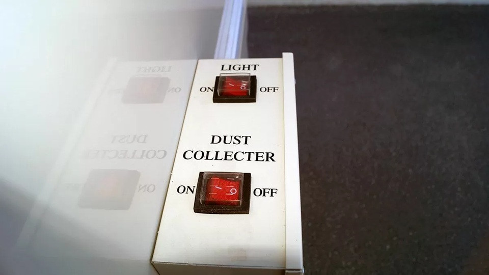 La cabine est équipée d’un système d’aspiration automatique de la poussière, qui améliore fortement la visibilité pendant le sablage.