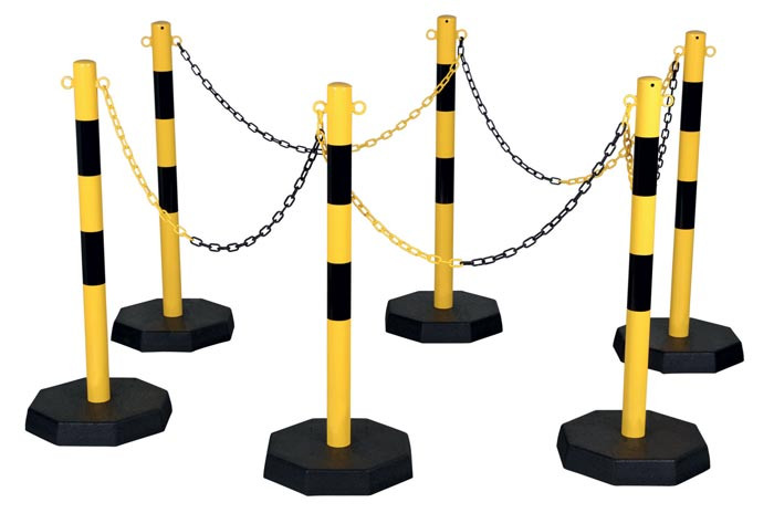 Acier Kit de 6 poteaux, 6 socles et 25 m chaîne Utilisation extérieure et intérieure Coloris : jaune-noir ou rouge-blanc