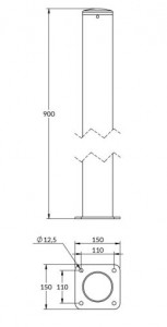 La fixation s’effectue par chevillage sur sol béton, assurant une stabilité maximale. Un kit de fixation au sol est disponible en option (réf. 10900250), facilitant la pose rapide et fiable du potelet.