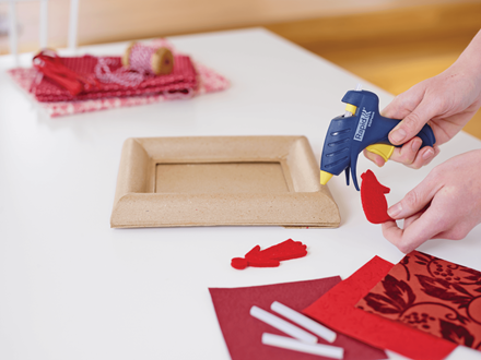 Petit pistolet à colle très fiable et polyvalent grâce à son cordon amovible.