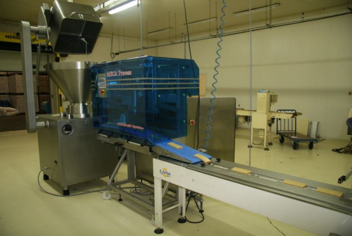 Ce trancheur à ultrason est une ligne de production automatisée, qui permet de trancher des produits et de les déposer automatiquement sur le film de la machine d’emballage.