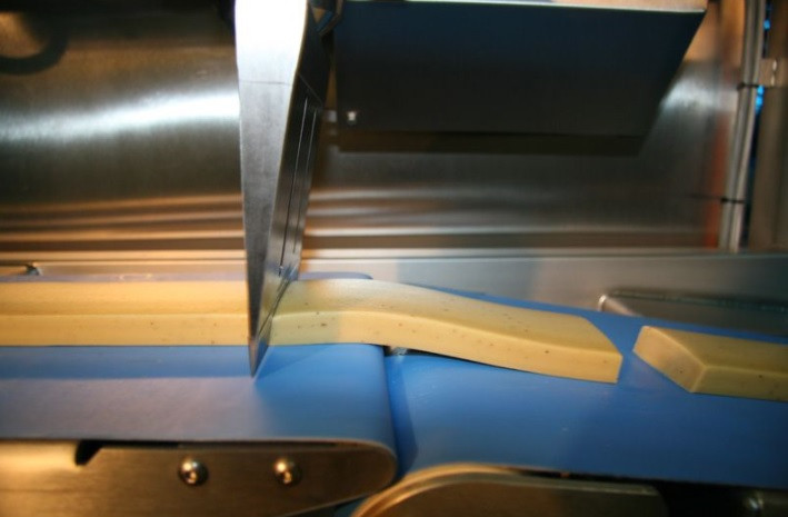 Ce trancheur est muni d’une coupe accompagnante qui se déplace à la même vitesse que le produit.