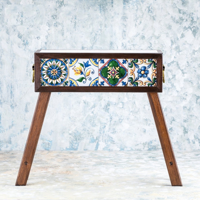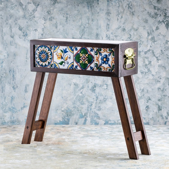 Fabriqué à partir de bois de pin de qualité et orné de carreaux à motifs mexicains, il allie esthétique et fonctionnalité.
