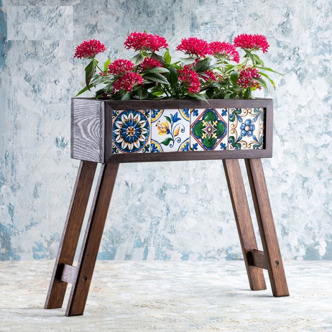 Ce pot de fleur en bois carrelé avec pied est un accessoire de décoration polyvalent, idéal pour ceux qui souhaitent ajouter une touche d'originalité à leur espace de vie.