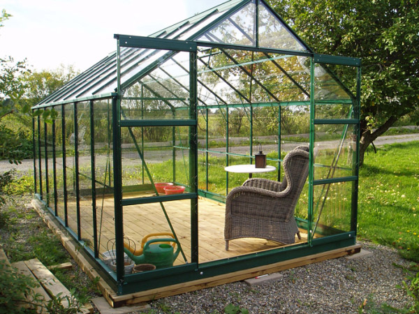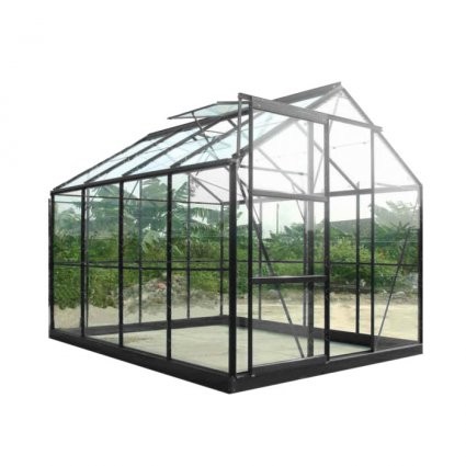 Cette serre dispose d'une porte coulissante qui facilite l'accès, et équipée d'une petite lucarne de toit qui permet d'aérer.