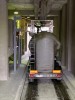 La citerne se met en position sur la zone de travail. L'opérateur accède sur la plate-forme fixe, déverrouille la passerelle abattante et la positionne manuellement sur le dôme de la citerne pour sécuriser le lieu d'intervention. Il peut maintenant accéder en toute sécurité et travailler dans la cage de protection sur le véhicule. A la fin de l'intervention, il procède de façon inverse.