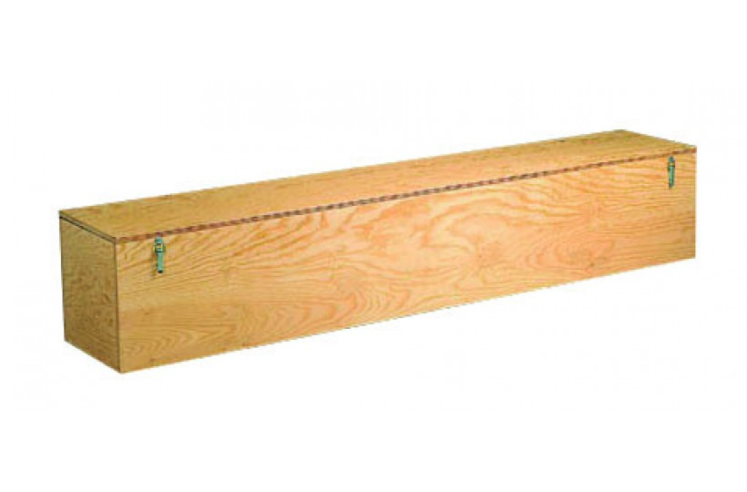 6 faces Pin Contre plaqué Verni – avec angles verticaux arrondis Dimensions : (L x P x H) 2,50 x 0,30 x 0,35 m Avec fermeture (sans cadenas)