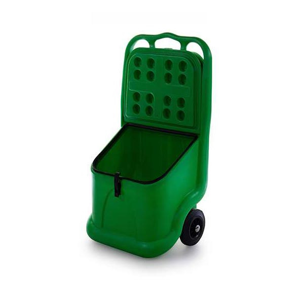 coffre de stockage mobile en plastique est adapté pour le stockage de sel de déneigement, gravier, sable ou autres matériaux granulaires