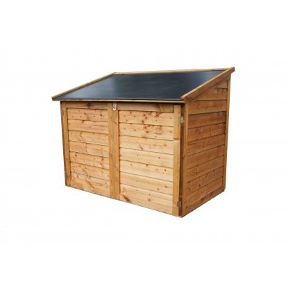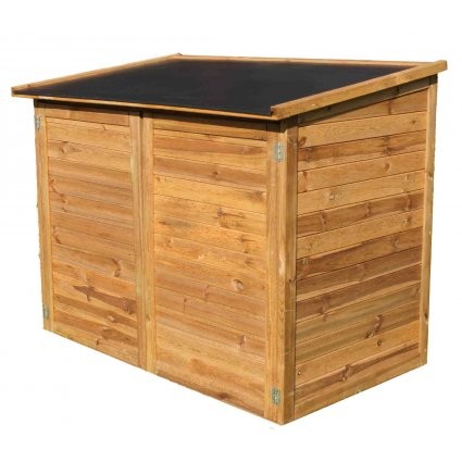 Remarque : grâce ses grandes capacités et une ouverture frontale par 2 portes et par le dessus avec couvercle, ce coffre permet le rangement d'objets avec grands volumes. (vélos - poubelles...)