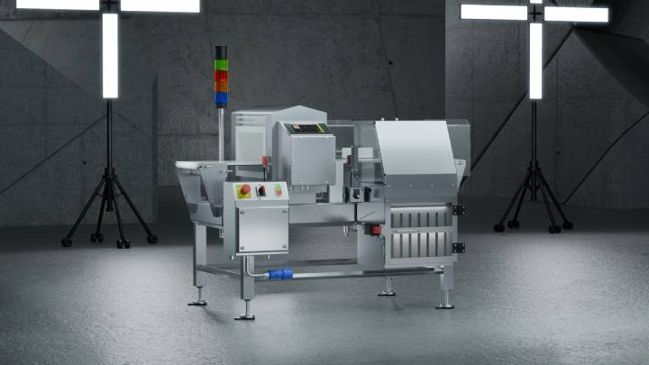Ce système tout-en-un associe un détecteur de métaux, un convoyeur et un dispositif d'éjection en option.