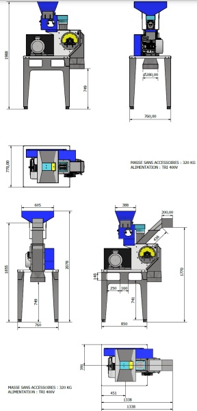 Il assure la fragmentation des produits jusqu’à ce qu'ils puissent traverser différentes grilles perforées : Du concassé jusqu’à la poudre.