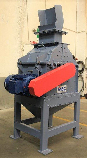 Le matériau à concasser est chargé à travers la bouche d’alimentation supérieure – qui peut être à la main ou par une bande transporteuse. Grâce à la présence et à la vitesse des marteaux, le matériau est écrasé jusqu’à ce qu’il soit réduit à une taille suffisante pour passer à travers la grille au-dessous. Le produit fini tombe à travers la trémie montée dans la partie inférieure du moulin dans un conteneur spécifique de récupérations.