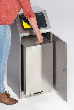 Disposant d’une trappe robuste à fermeture automatique et ouverture par pédale.