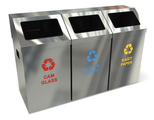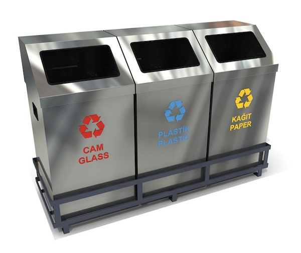 Nous vous proposons notre corbeille tri sélectif, un mobilier urbain composé de 3 bacs, idéals pour les lieux à fort passage.