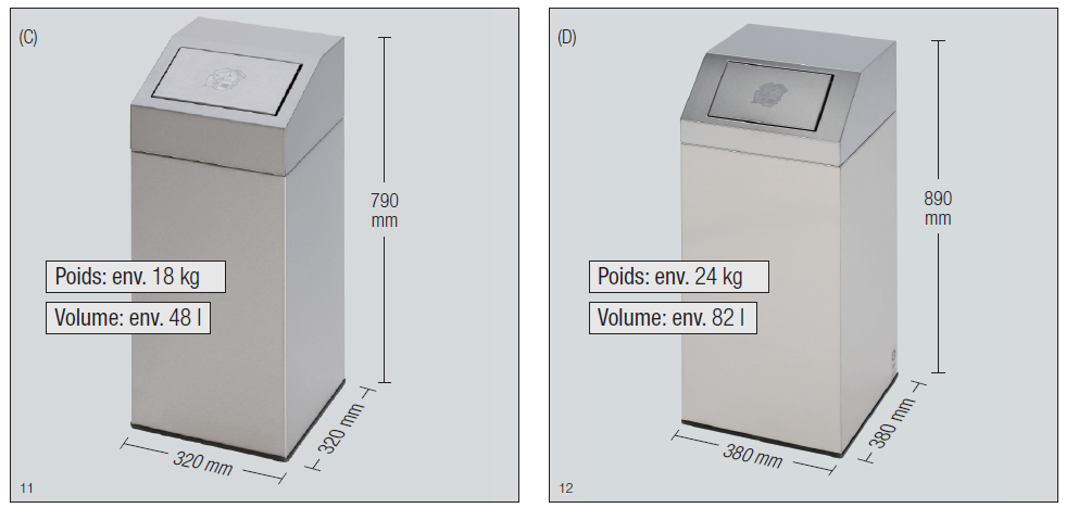 | Réf. TC :602559172 | Poubelles tri sélectif inox brossé | 38 x 38 x 89 | 76 | -