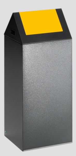 06/12/2022Une poubelle noir avec couvercle gris et une poubelle noir avec un couvercle jaune.