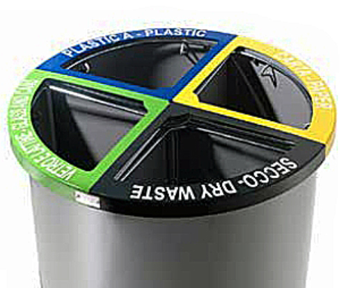 Chaque compartiment possède une couleur, pour distinguer 4 types de déchets :
