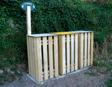 Destinée aux collectivités, parcs publics et aires de repos, notre corbeille tri sélectif s'intègre parfaitement dans tout environnement naturel.