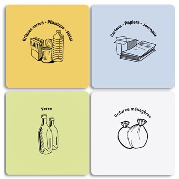 Le mât central avec panneau "tri sélectif" en compact et vinyle guide efficacement vos utilisateurs dans leurs gestes de tri.