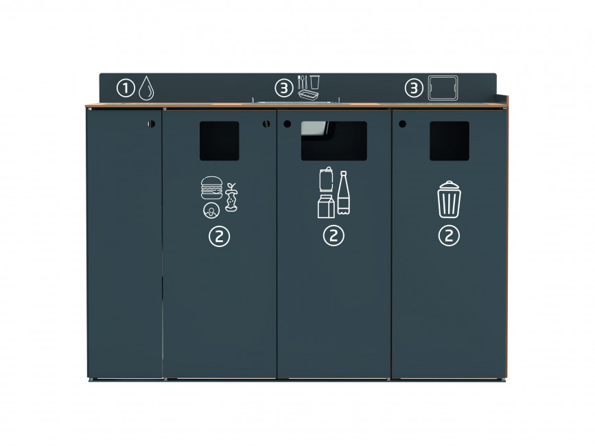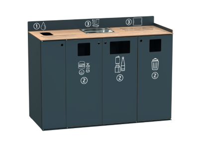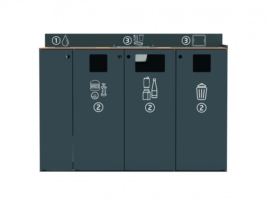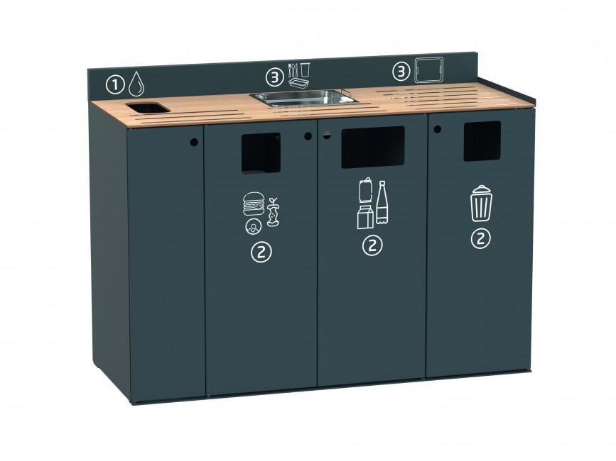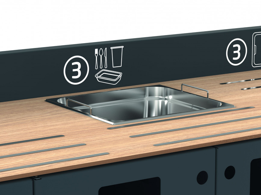 intérieur ou en extérieur couvert, ce meuble convient parfaitement à tous les espaces de restauration collective souhaitant mettre en place une démarche de
