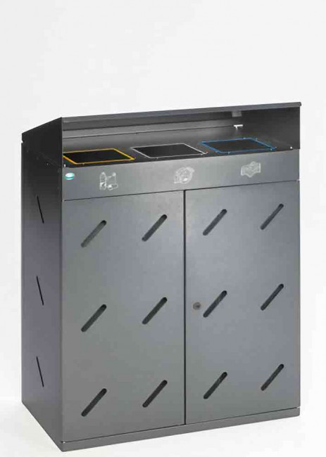 Cette station tri sélectif triple dispose de 4 pieds réglables pour un ajustage simple.