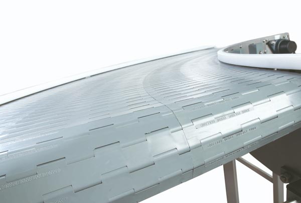 Le plus petit pas optimalise le transfert à d’autres convoyeurs et le plus petit rayon intérieur permet un design compact.