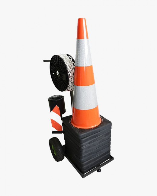 Ce chariot est conçu pour transporter de 10 à 20 cônes suivant le modèle et les accessoires.