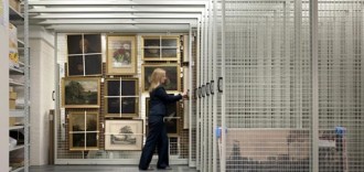 . 1 travée Médaillers historiques, L- hauteur 260 mm, 3 tiroirs / 9 – hauteur 320 mm, 9 tiroirs / F – hauteur 1050 mm, 15 tiroirs / disponible – hauteur 260 mm, 3 tiroirs