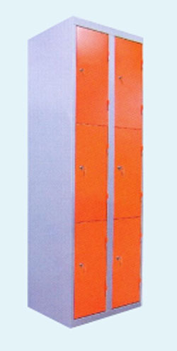 une armoire de vestiaire à 6 casiers fermant à clé (2 casiers en hauteur, 3 en largeur)