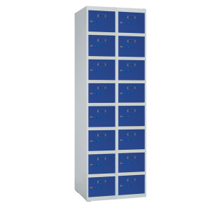 La couleur standard du vestiaire est gris RAL 7035 pour le corps et bleu RAL 5010 pour les portes.
