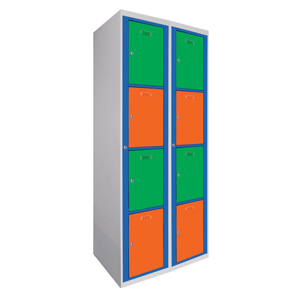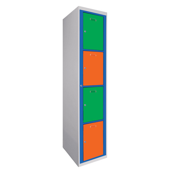 Notre casier vestiaire visitable 4 portes répond parfaitement aux besoins de rangement personnel dans vos espaces collectifs.