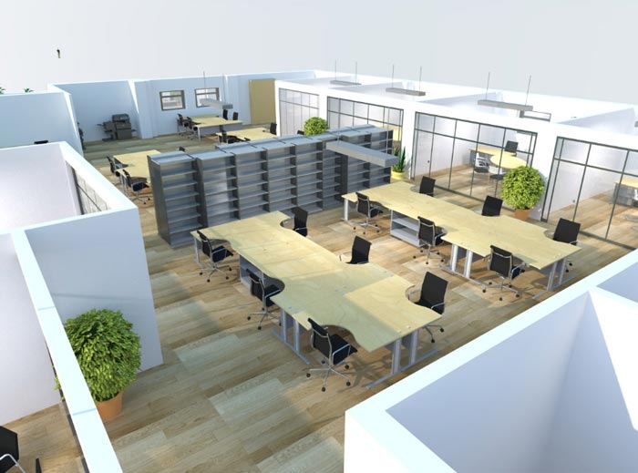 Aménagement d"un local bureau pour de la fourniture et la pose pour du 2 modules Rayonnage latéraux. 1 Module Longueur 4 m linéaire. 1 Module Longueur 4m50 Hauteur 2m20 sur 7 niveaux.