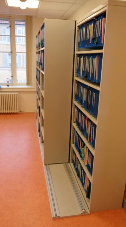 Ce rayonnage à déplacement latéral est un système de stockage sur-mesure adapté pour aménager :