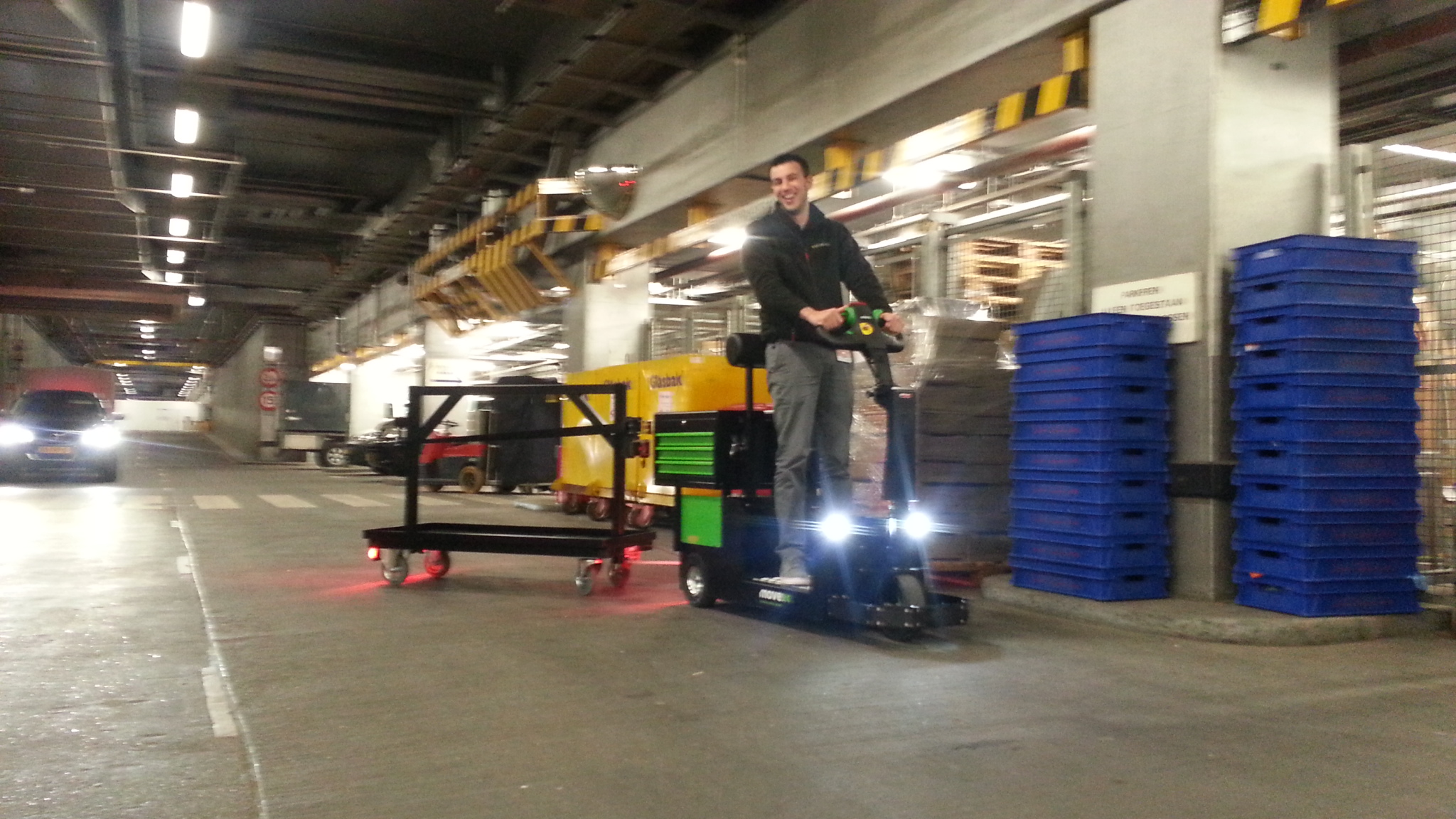 Tracteur électrique autoporté pour les conteneurs 4 roues et 2 roues , entre le sous sol et le rez-de-chaussée(pente). on en sort 2 à 3 à chaque fois. Cordialement.