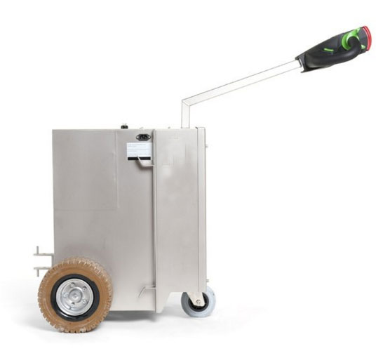 Déplacement de caisses isothermes sur roulettes entre cuisine centrale et école maternelle (400m) cinq caisses de 50kg chacune démentions largeur 476, profondeur: 679, hauteur: 854, tiré par un tracteur-pousseur électrique