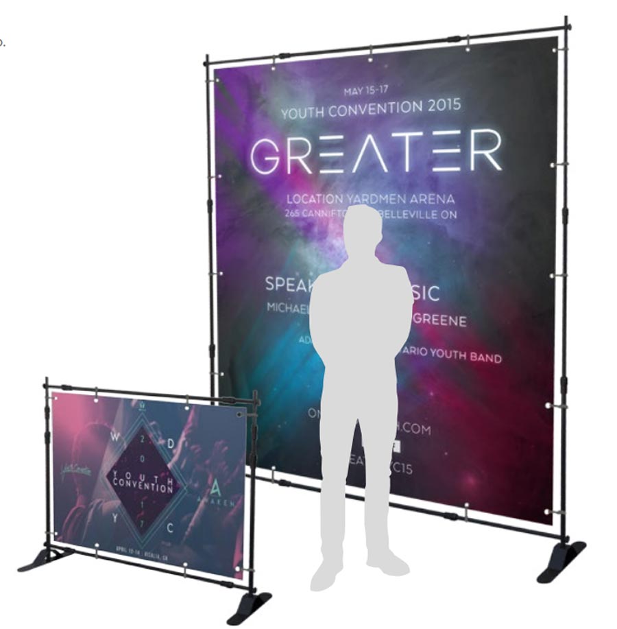 Son cadre en tubes télescopiques permet son extension horizontale et verticale afin de s’adapter aux différentes dimensions du visuel.