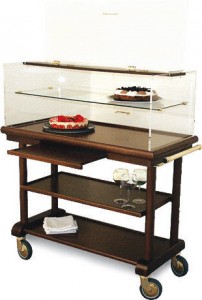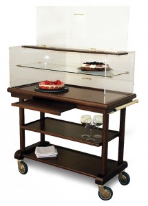 Ce chariot à fromages et pâtisseries est conçu pour présenter le fromage aux client d’une manière élégante.