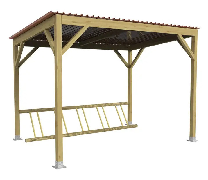 La structure de cet abri vélo en bois est réalisée en bois résineux avec traitement autoclave sous pression, classe 4.